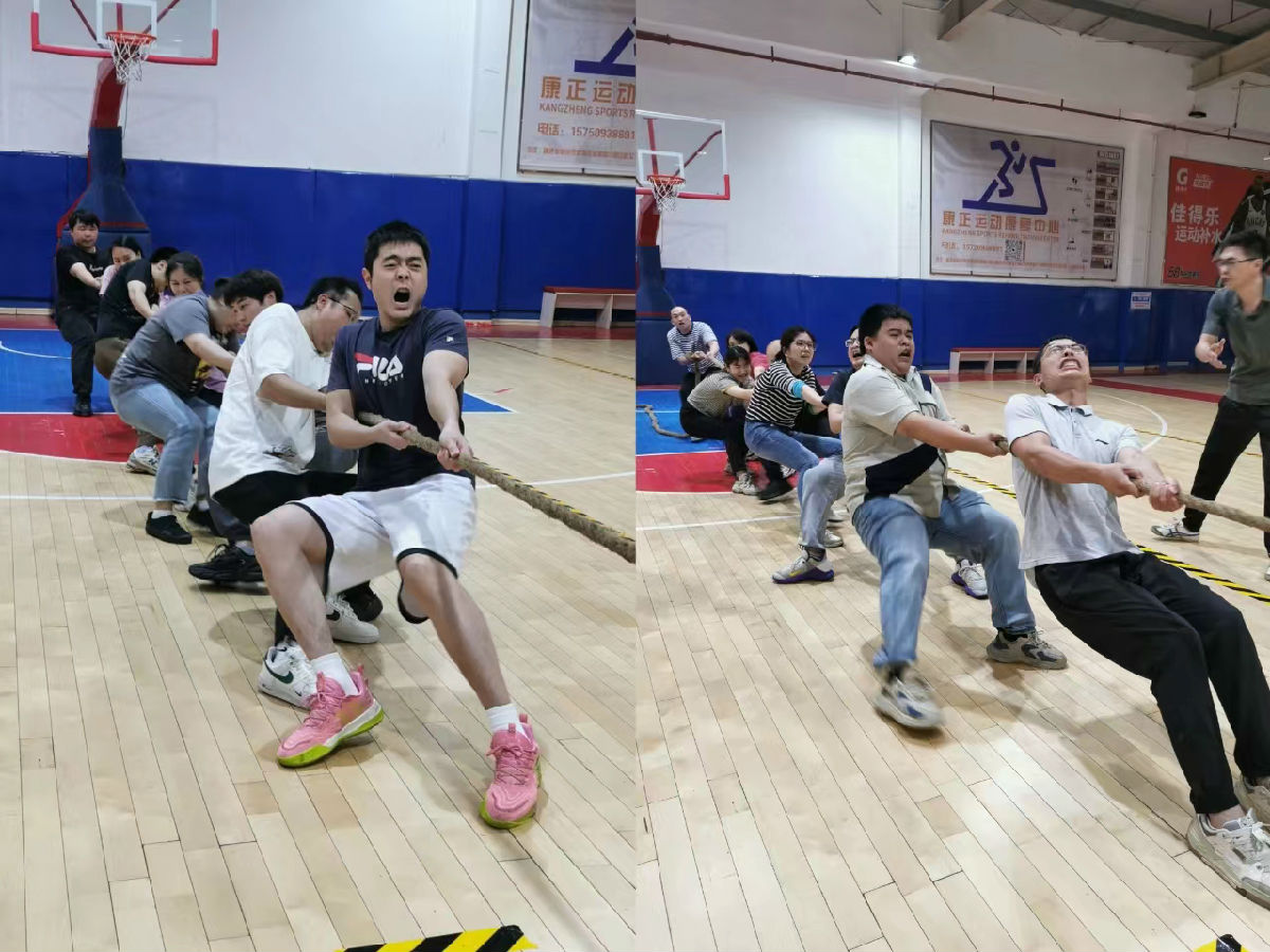 力量角逐,上下一心。伴隨著裁判的一聲哨響,兩個隊同時發力,拔河繩陡然繃緊,隊員們步調一致、扎穩馬步、降低重心、身體后傾,紛紛咬緊牙關,奮力拼搏,“一根繩、一條心”的團結意識體現的淋漓盡致。