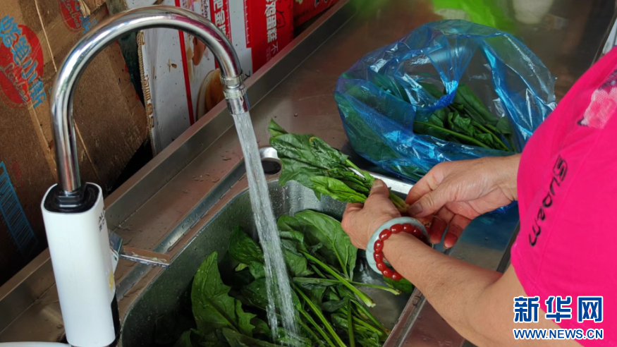 這是島上居民用自來水清洗蔬菜。新華網(wǎng) 劉默涵 攝