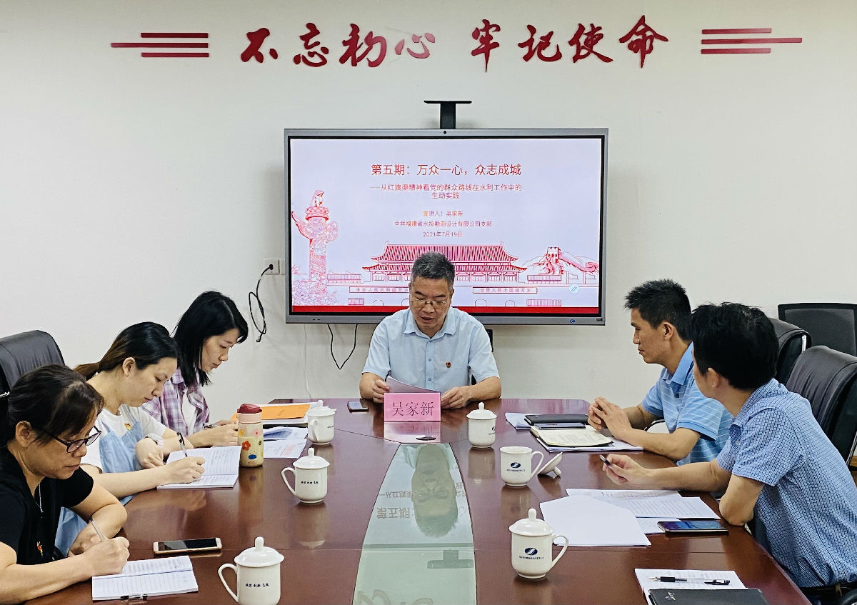 7月19日,水投設(shè)計(jì)公司黨支部開展第五期黨史專題宣講。公司黨員吳家新同志以《萬眾一心·眾志成城——從紅旗渠精神看黨的群眾路線在水利工作中的生動(dòng)實(shí)踐》為題進(jìn)行宣講。會(huì)后,全體黨員干部還一起觀看電影《建軍大業(yè)》。