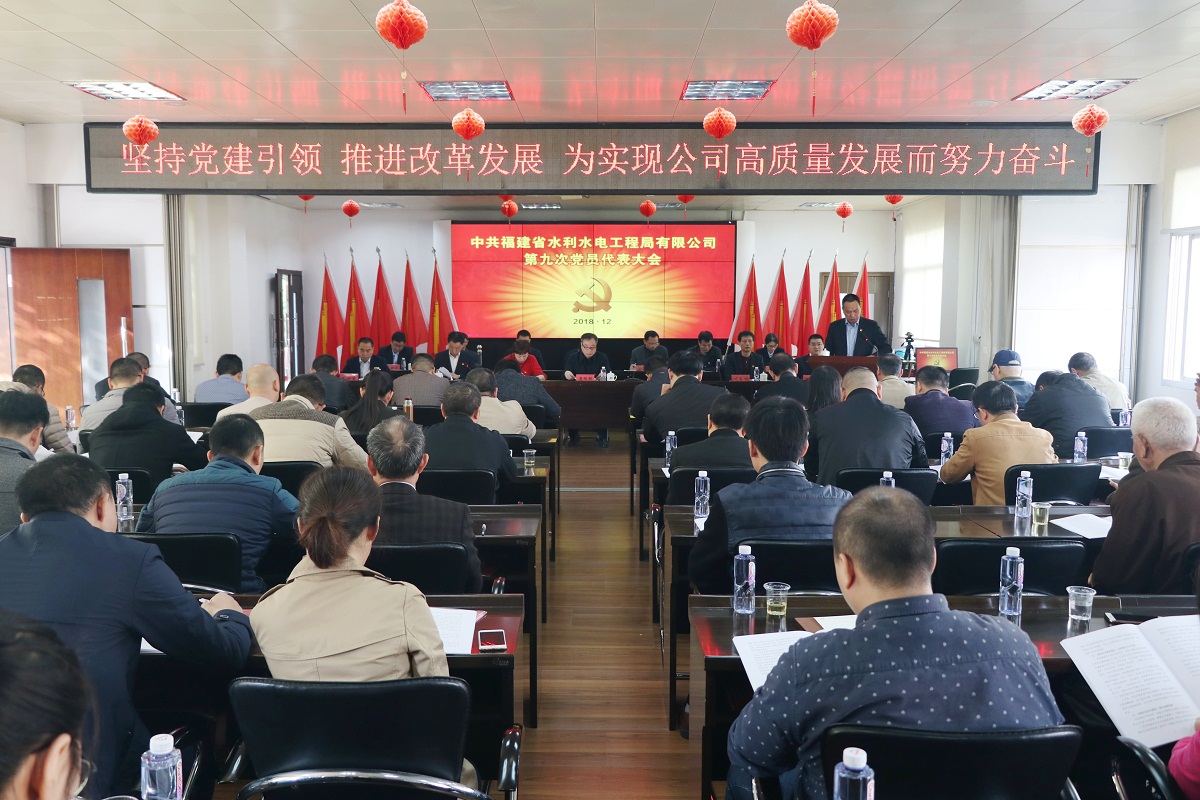 12月20日,中共福建省水利水電工程局有限公司第九次黨員代表大會在泉州公司本部隆重召開。來自公司17個黨支部的60名正式代表,4名列席代表參加了大會。集團公司黨委副書記、紀委書記潘振銘蒞臨大會指導。